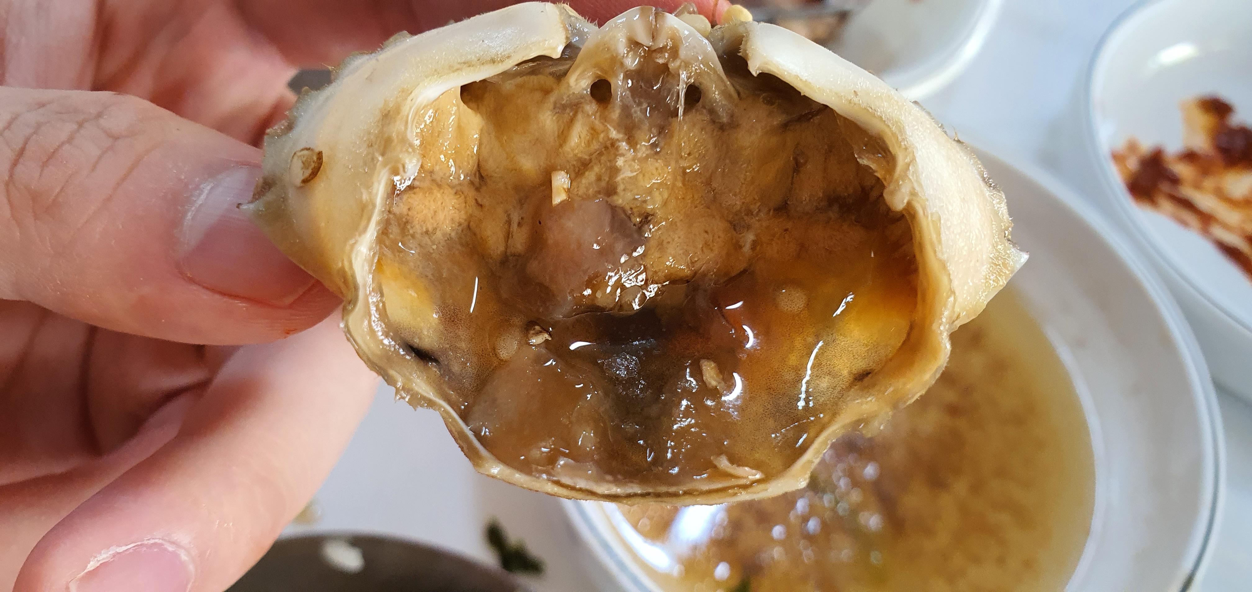 석천 식당의 간장게장은 간장게장에 고추를 좀 많이 넣으셨는지 처음에 먹을 때는 모르다가 점점 먹다 보니 혀 끝이 얼얼하게 매워오는 맛이 올라와서 그만큼 밥을 더 먹게 만드는 맛으로 먹는 것 같았습니다. 결코 돼지여서 공기 두 그릇을 시켜먹지는 않았습니다.