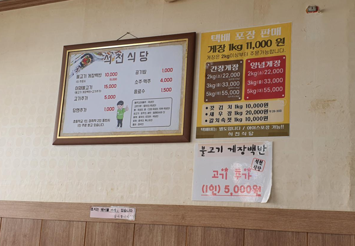 본인이 프로 혼밥러라면 불고기 게장백반을 시켰을 시 15,000원 이지만 이런 식도락 여행은 무릇 친구, 연인, 부부, 가족 사이의 사람들과 함께 할수록 좋은 것이니 꼭 같이 할 한 분을 섭외해서라도 1인당 10,000원이라는 가격대로 식사를 맛나게 하는 게 중요한 점이라면 중요한 점입니다.