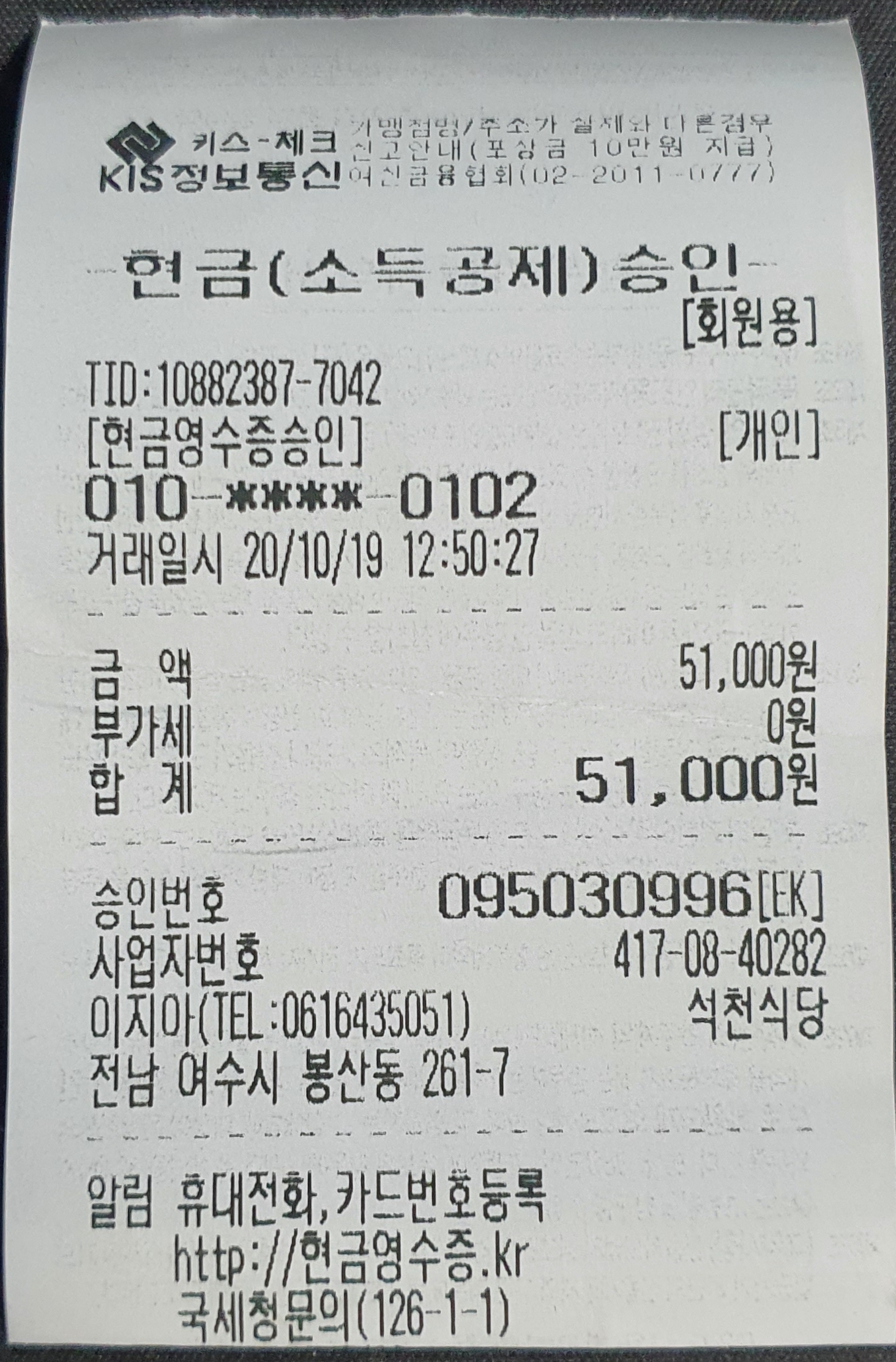 혼자 공기 두 그릇에 간장게장+양념게장 세트에 추가로 불고기 백반까지 싹싹 비워먹었더니 정말 배가 터져 죽을 뻔했습니다. 이 모든 걸 인당 1만 원에 했다는 건 정말 혜자 of 혜자가 아닌가 싶습니다. 혹시 추후라도 여수를 가실 일 이 있으신데 게장백반을 한 끼 식사로 하셔야 한다면 이곳 "석천식당" 강력 추천드립니다.