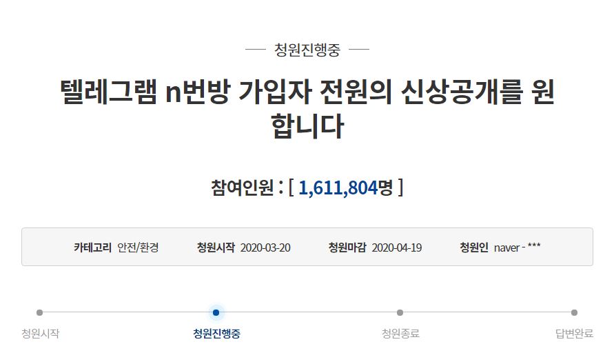 해당 블로그 글을 작성하는 금일(3월 23일) 현재 문재인 대통령이 직접 N번방 운영자와 해당 메신저 방의 사용자들에 대한 엄중 처벌을 지시한 가운데 청와대 청원은 현재 1백만을 넘어서 2백만을 다가가고 있는 상황입니다.