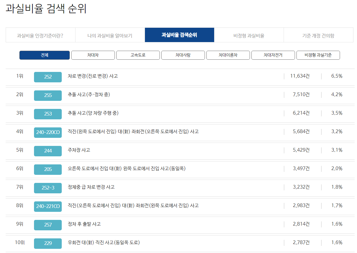 차량 운전자이면서 차량 사고 보험 과실 비율에 관심 있으신 분들한테 굉장히 교육적인 사이트인 것 같습니다.
