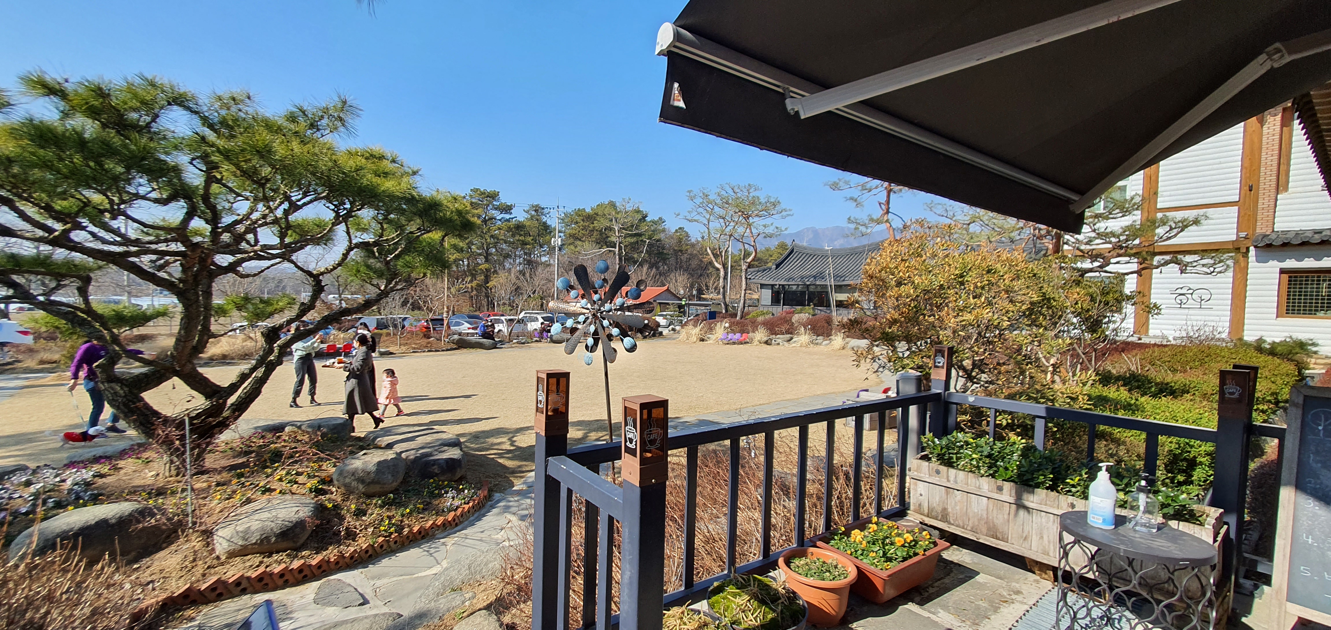 한옥 스타일의 멋들어진 건물과 넓디넓은 잔디밭이 있어서 마음이 막 편안해지는 느낌이 듭니다.