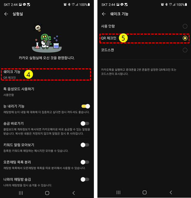 카카오톡 쉐이크 기능으로 QR체크인 더욱 간편하게 사용하기