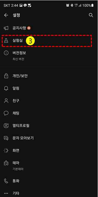 그러면 실험실 이라는 메뉴가 보일 겁니다. 여기를 눌러주시면~