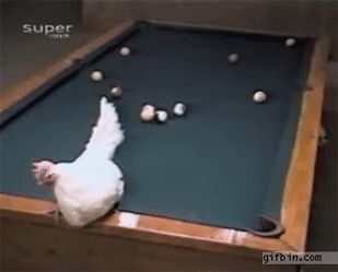 준비물 : 암탉 , 기가 막힌 궤적으로 설계된 포켓볼들, 놀랄 나