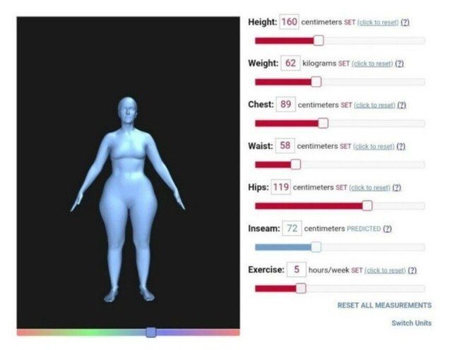 여하튼 주어진 신체 정보를 "3d body visualizer"라는 시뮬레이션에 입력해 주면