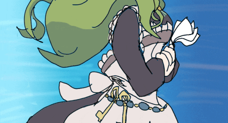 의도한건지 모를 1990년대 풍 PC 게임 삽화 일러스트 + 뜬금없이 뱅글뱅글 도는 고정된 움직임의 모션 + 왜 하는지 모를 윙크 + 더더욱 의미를 찾기 힘든 작아졌다 커졌다를 반복하는 고정된 모양의 일러스트...