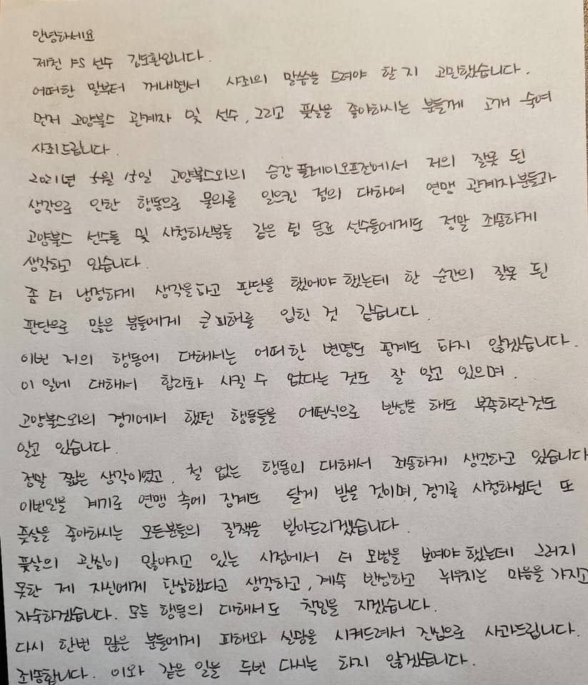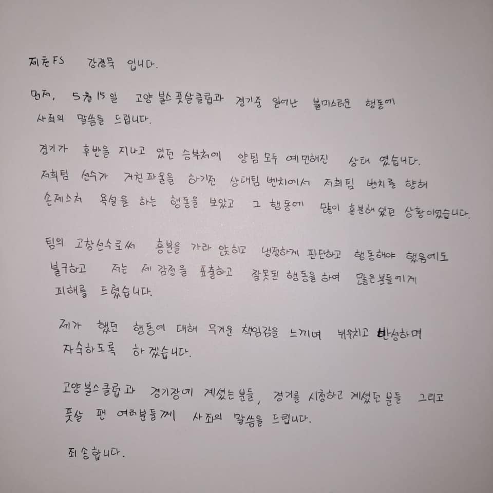 때는 지난 주말이었던 5월 15일 토요일, 파주NFC에서 열린 고양불스풋살클럽과 충북제천 FS 팀간의 FK리그 승강플레이 오프 경기에서 비롯되었습니다.