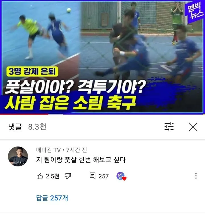 국내 풋살 리그중에 소림축구 뺨치는 비매너 플레이가 나왔다고 합니다.