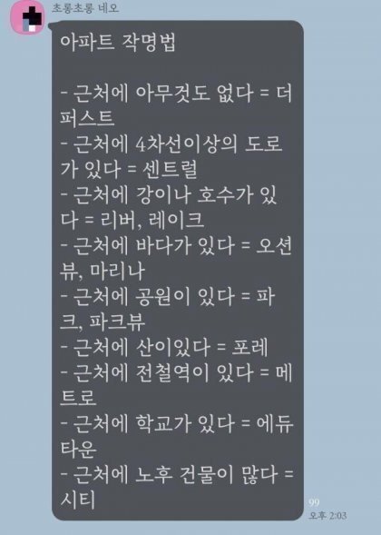 아파트 작명법 공식[펌]