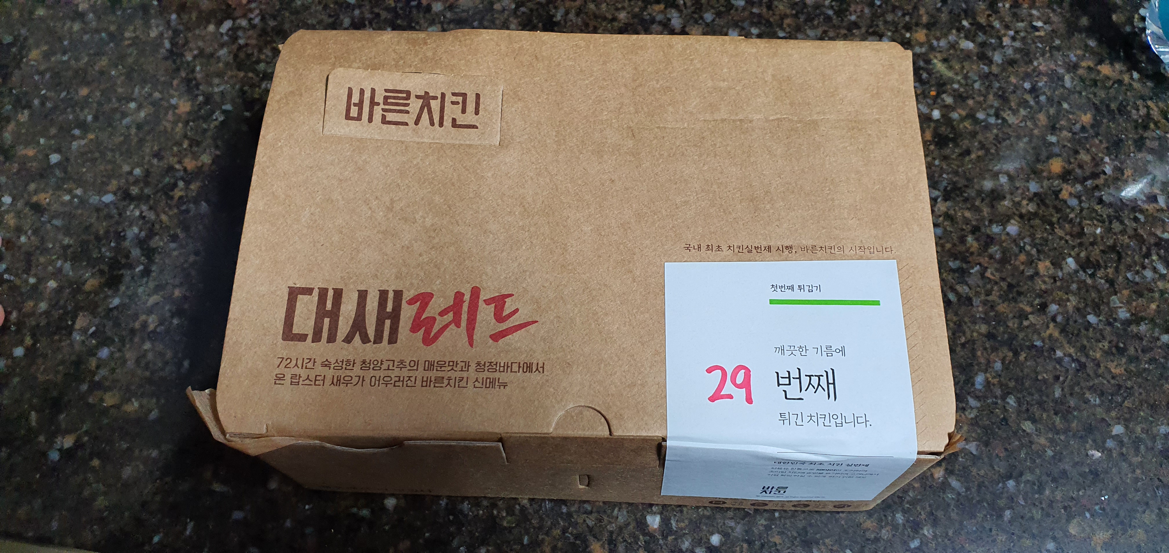 바른치킨에서는 저렇게 제가 영접할 치느님이 몇 번째 튀김 입욕을 하신 건지 순서를 적어준다고 합니다.