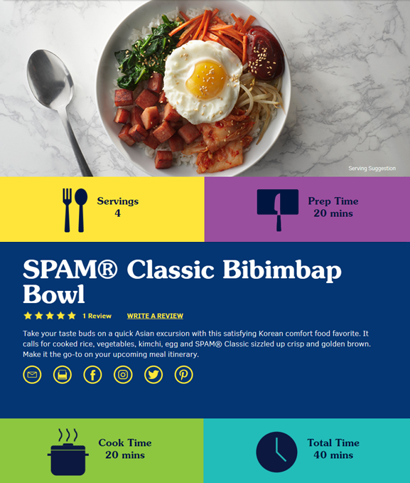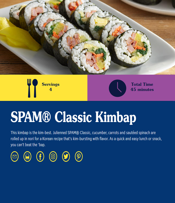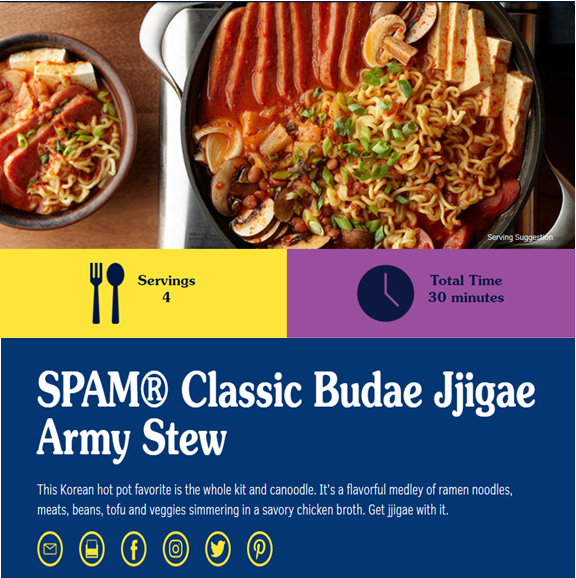 스팸의 공식 홈페이지에는 한국식 레시피로 만든 스팸 요리가 소개되어 있단 글을 발견하였습니다.