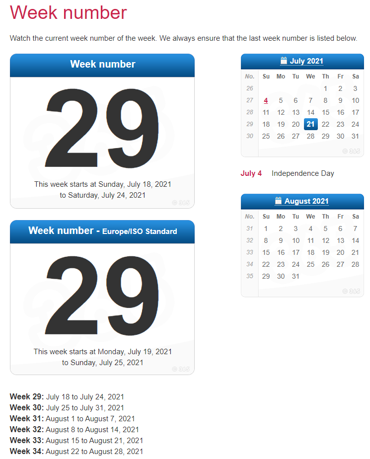 검색 결과대로 7월 22일은 이번 연도의 29번 째주 이면서, 29주는 7월 18일부터 7월 24일이라는 설명도 해줍니다.