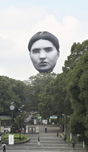 도쿄도 시부야의 요요기 공원이라는 곳에서 일본인 작가 3명으로 이루어진 팀인 '메(目)'라는 예술팀이 띄운 얼굴 조형물의 형상을 띈 거대 풍선을 띄웠습니다.