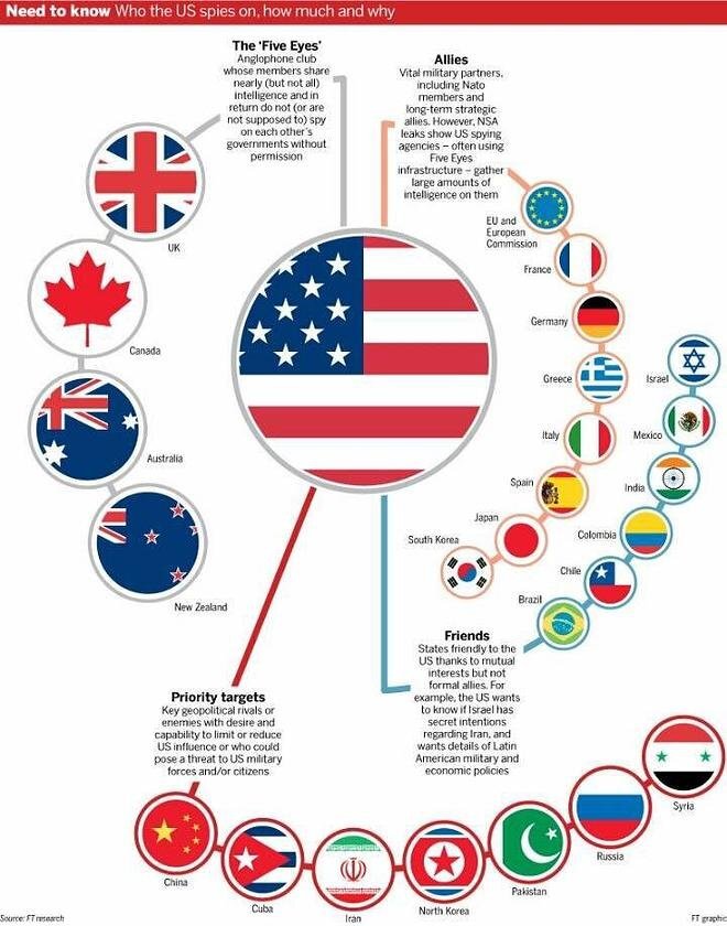 이 국가들은 서로 협력하며 세계 각국을 도청하고, 도청 정보를 공유한다.