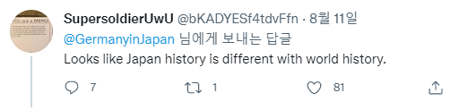 그리고 이 트윗에 게거품을 물고 일본 트위터리안들이 "잘못된 기록이다", "헛소리다" 등등의 답글 등을 달게 되면서 댓글이 폭발 중인 상황으로 계속 대치중인데 언제까지 가려나 궁금하네요.
