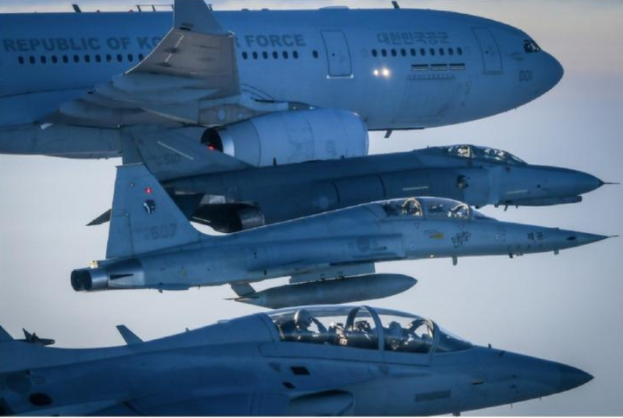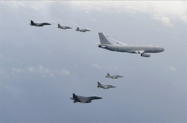 날아다니는 호랑이 홍범도 장군님의 유해가 실린 대한민국 국적 KC-330 MRTT 시그너스 공중급유&물자수송용 수송기가 대한민국 방공식별구역(KADIZ)에 진입하자마자 대한민국 공군이 보유한 6개 전투기종의 전투기들이 홍범도 장군님의 유해가 실린 수송기를 엄호 비행하였습니다.