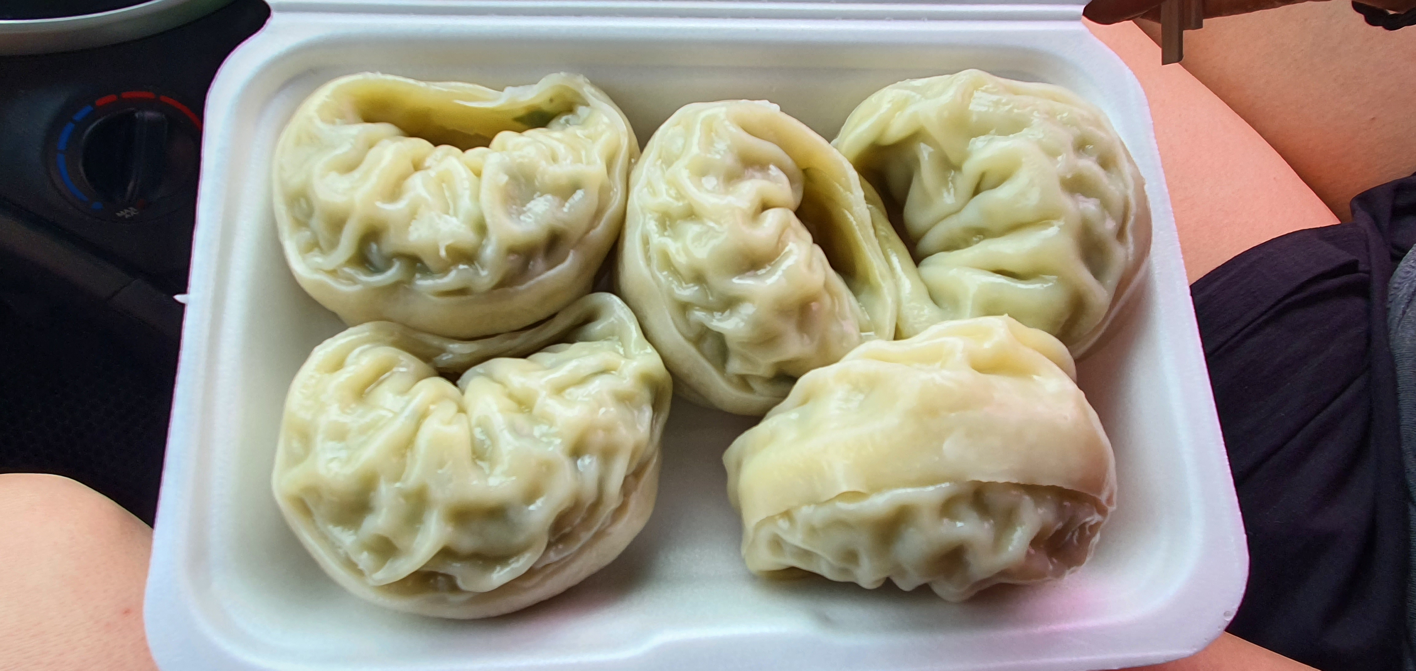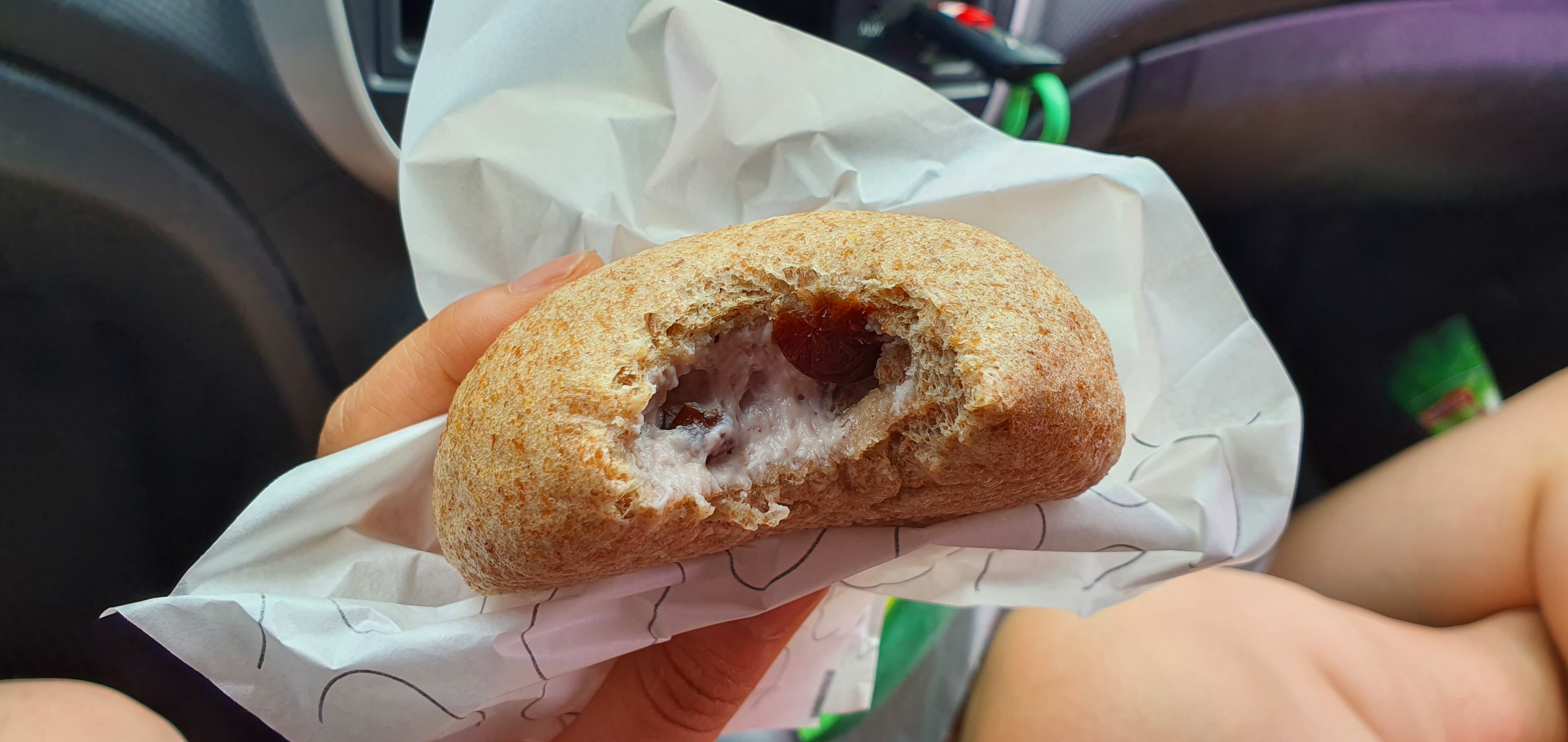 통밀 블루베리 크림치즈 찐빵 하나와 고기만두 5개짜리 하나를 시켜 보았습니다!