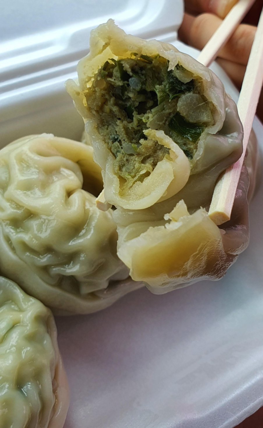 막 찐 걸 받았기 때문에 많이 뜨거울까 봐 살짝 베어 물았는데 딱 적당한 온도여서 입이 데이진 않았습니다.
