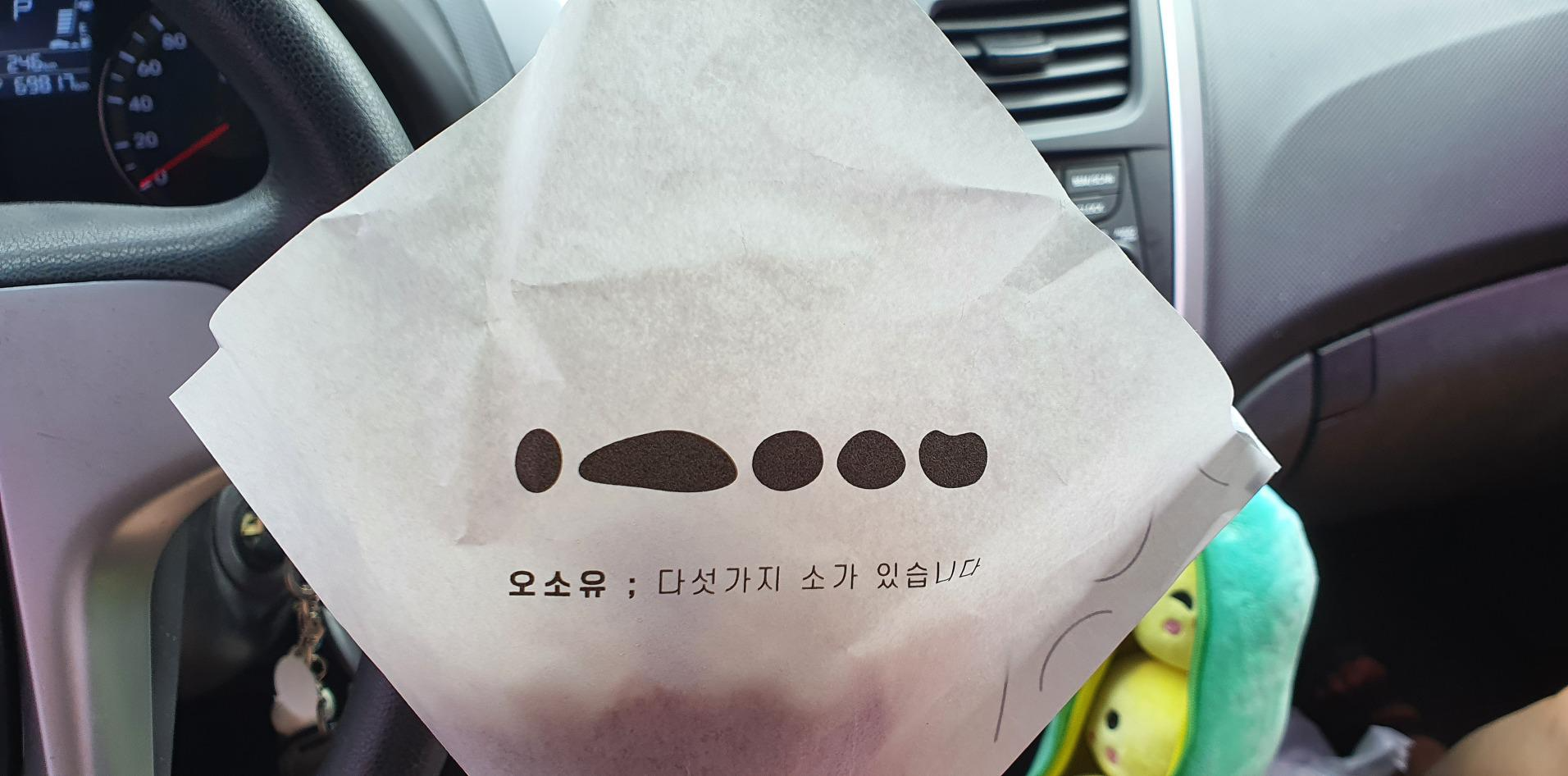 통밀 블루베리 크림치즈 찐빵은 오소유 카페의 포장지에 담겨 있었습니다~