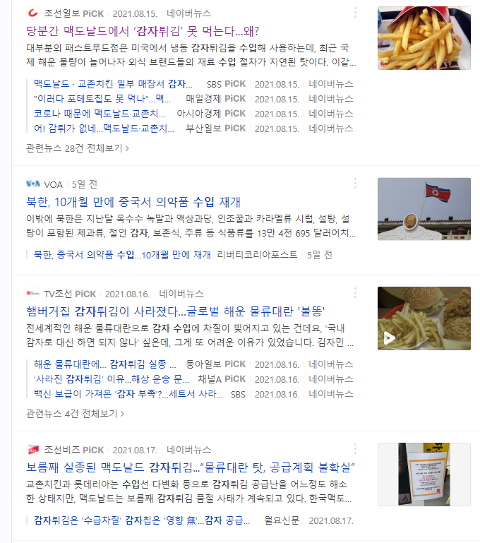 코로나 땜시 뚝 떨어졌던 감자 수요가 최근 다시 급격하게 수요가 늘어나서 불어 난 물량을 감당할 수 없을 정도로 물류대란이 나서 감튀를 못 먹었습니다...