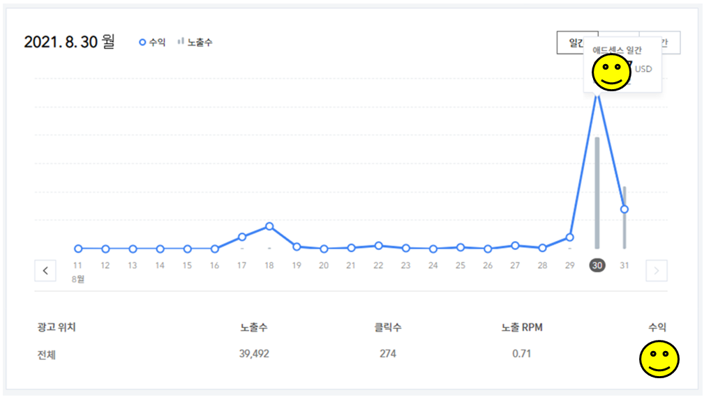 정확한 수치를 공개했다간 블로그 제재를 당한다는 말이 있어서 수익은 가려놨습니다.
