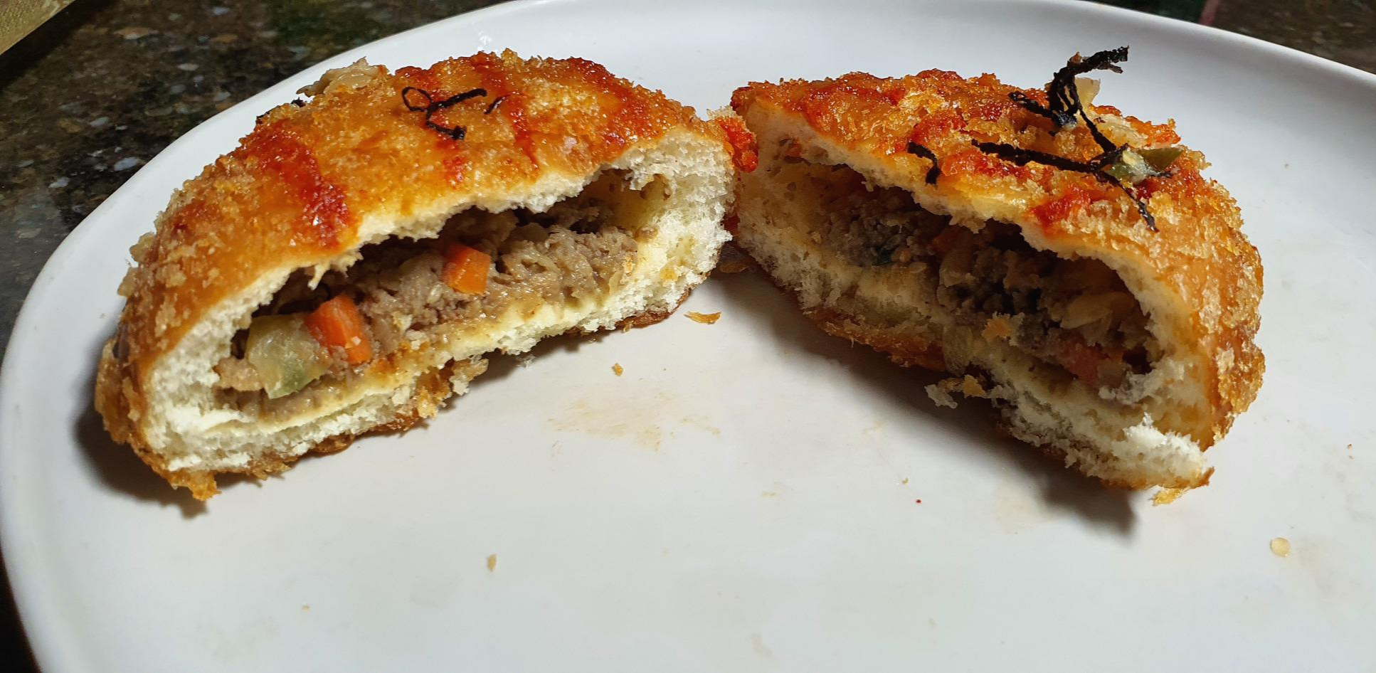 오른손으로 비빈 고로케에 비하면 빵 내부의 공간 대비해서는 그래도 이쪽은 속재료 비율은 더 높은 듯합니다.