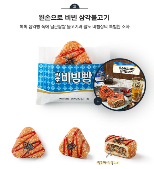 그래도 삼각김밥 모양의 빵은 디자인 측면에서는 굉장히 먹어보고 싶은 느낌이 들며 빵 겉면에 삼각김밥의 밥이 보이는 듯한 착각을 불러일으키는 밥알 코팅(?)이나 팔도비빔면 소스의 향이 더 높았던 점은 좋았습니다.