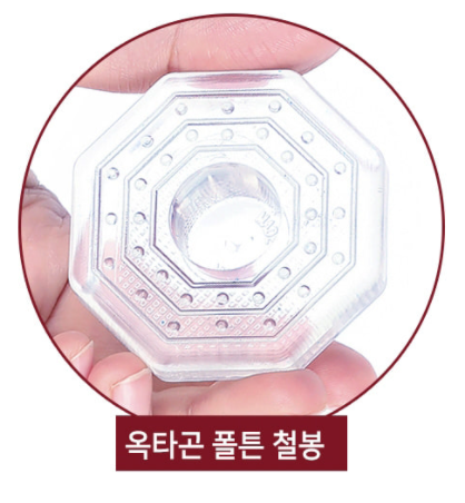 멜킨 옥타곤 철봉의 양끝은 위와 같은 옥타곤 모양의 홈이 파여 있는 러버 케이스가 자리 잡고 있어서 상대 물과 부착 시에 확실한 밀착력이 발생해서 문에 볼트를 박아서 고정하지 않아도 되는 장점이 있습니다.