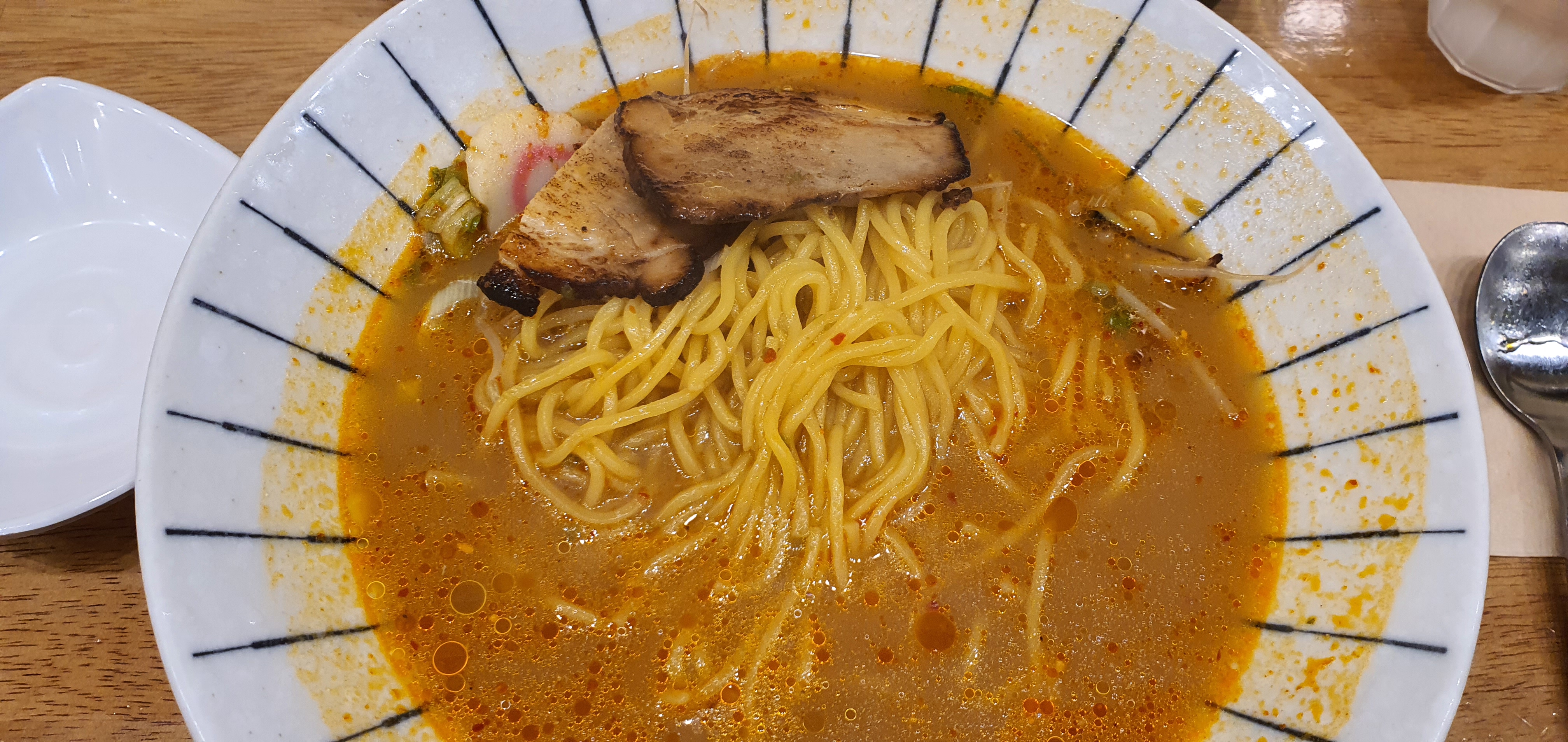 스테이크 대신에 주문한 탄탄멘 보통맛에 차슈를 선택한 메뉴입니다.