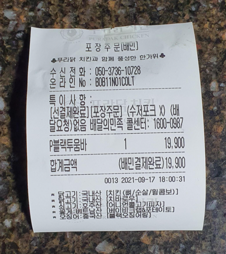 | 푸라닭치킨 - 순살매드갈릭 으로 추석 연휴 마무으리 (41) | 2021.09.23 |