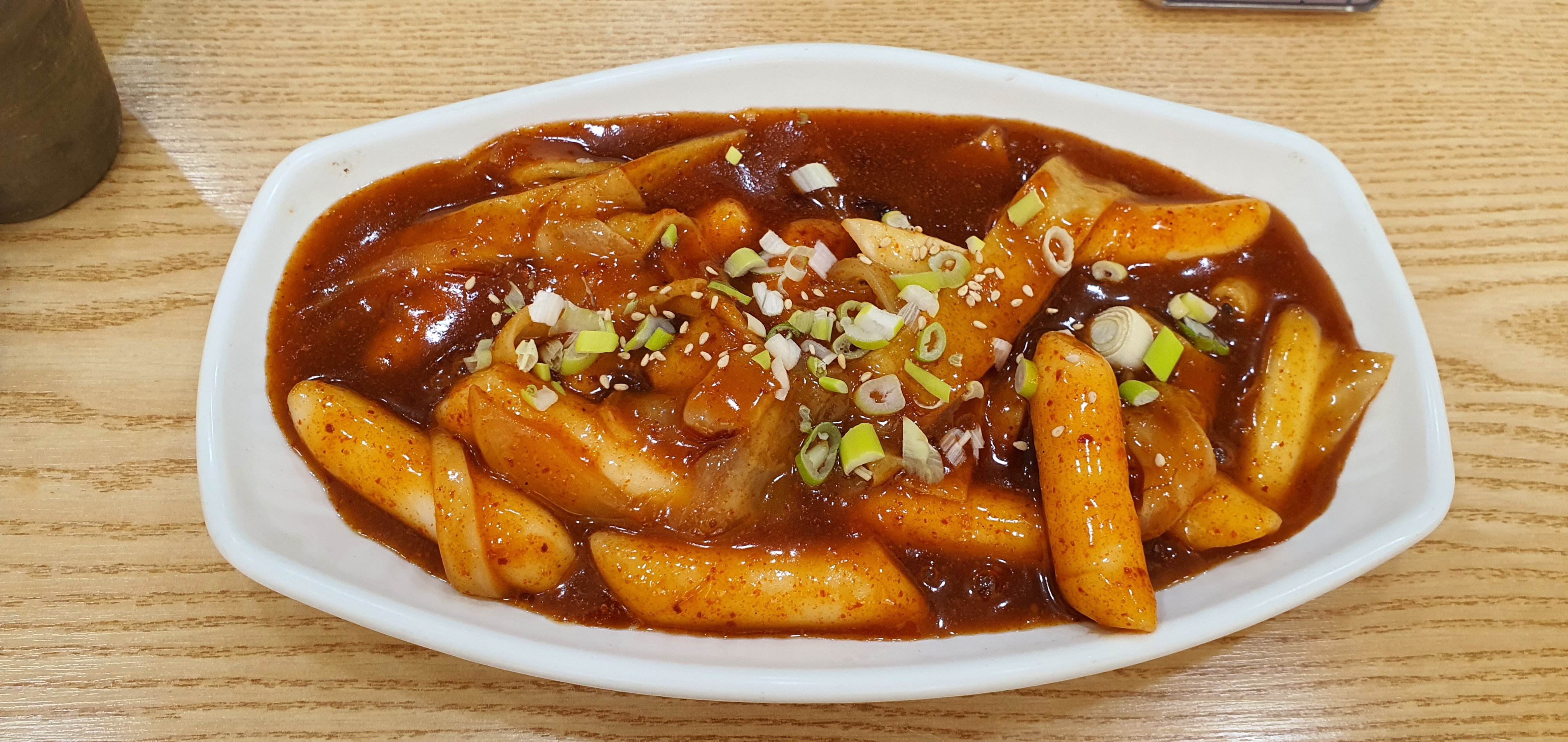 일반 분식점에서 흔히 볼 수 있는 떡볶이의 비주얼이었지만 냄새는 살살 매콤하게 나는 게 먹다 보니 점점 매운맛이 올라오는 게 끝쯤 가서는 좀 매운맛이 입에서 맴돌아서 약간 땀 좀 흘렸습니다.