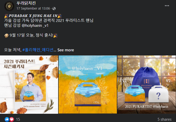알고 보니 푸라닭치킨이 배우 정해인과 함께 협업한 컬래버레이션 한정판 시즌 패키지의 일환이라고 합니다.
