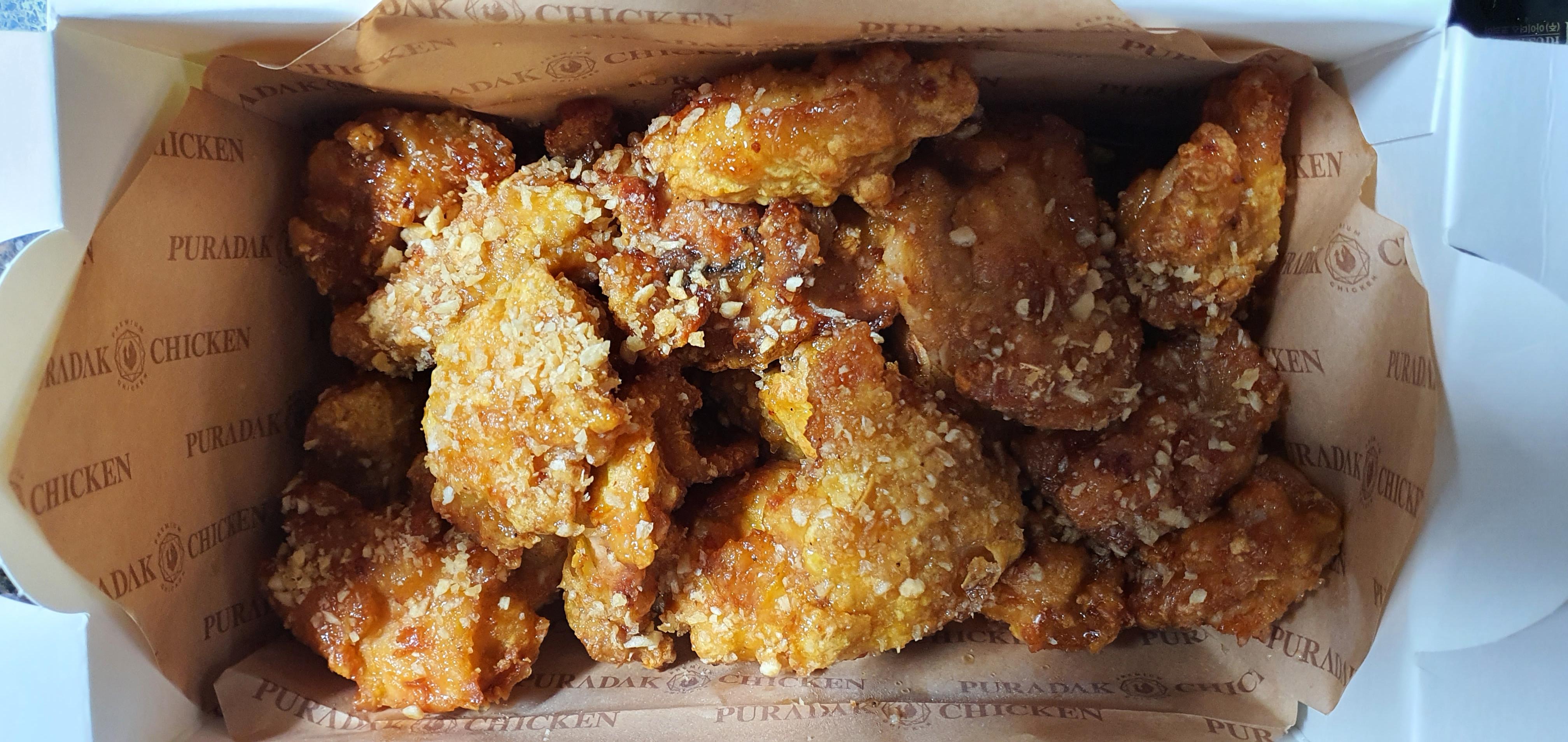 그래서 달달한 정부돈으로(사실 모두의 세금♡) 달달한 푸라닭치킨의 순살매드갈릭을 시켜 먹었습니다.