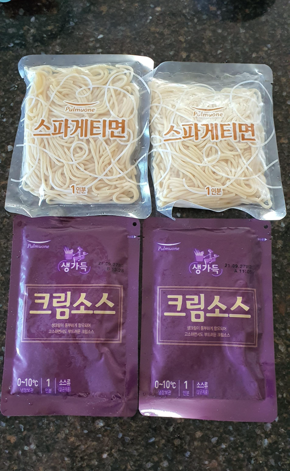 2인분에 맞게 파스타 면 2 봉지와 크림소스 2 봉지가 각각 들어가 있습니다.