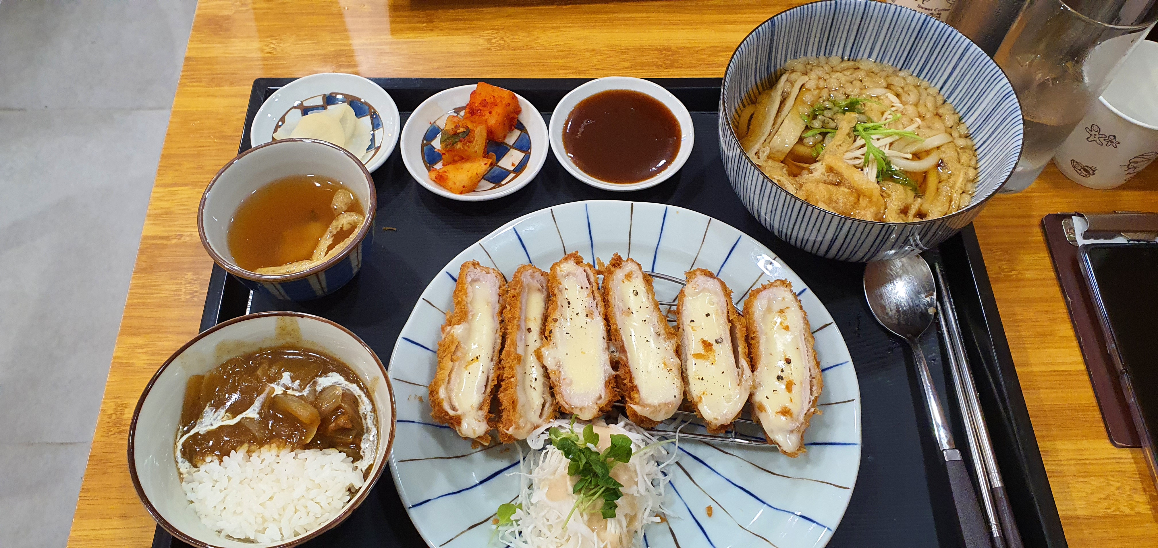 소바는 간간히 먹어서 우동을 먹고싶어서 우동을 선택하고 추가로 생돈가스 위에 치즈를 얹혀주었습니다.