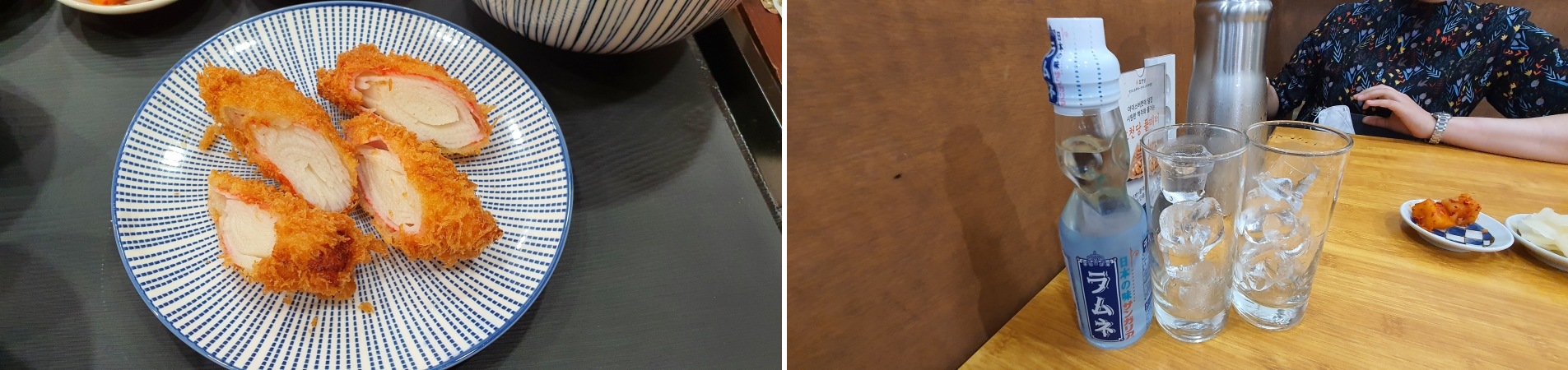 입가심 겸 사이드로 주문한 크래미 가츠랑 라무네 음료입니다.