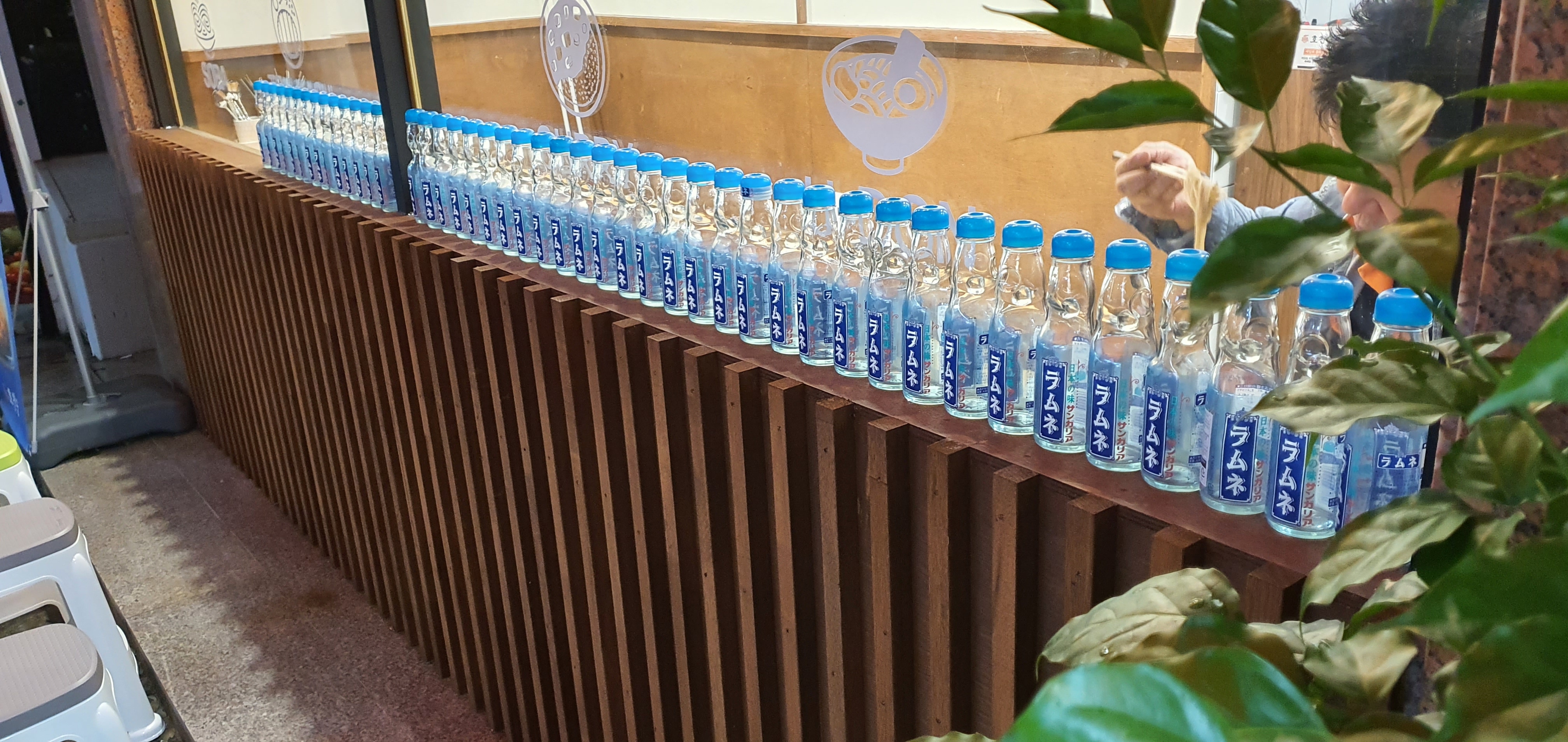 호천당에서는 일본 탄산음료 중 하나인 "라무네"를 파는데 이렇게 매일 팔린 라무네 병을 밖에다가 진열을 하시는 듯했습니다. 뭔가 보기 좋아 보여서 한컷!