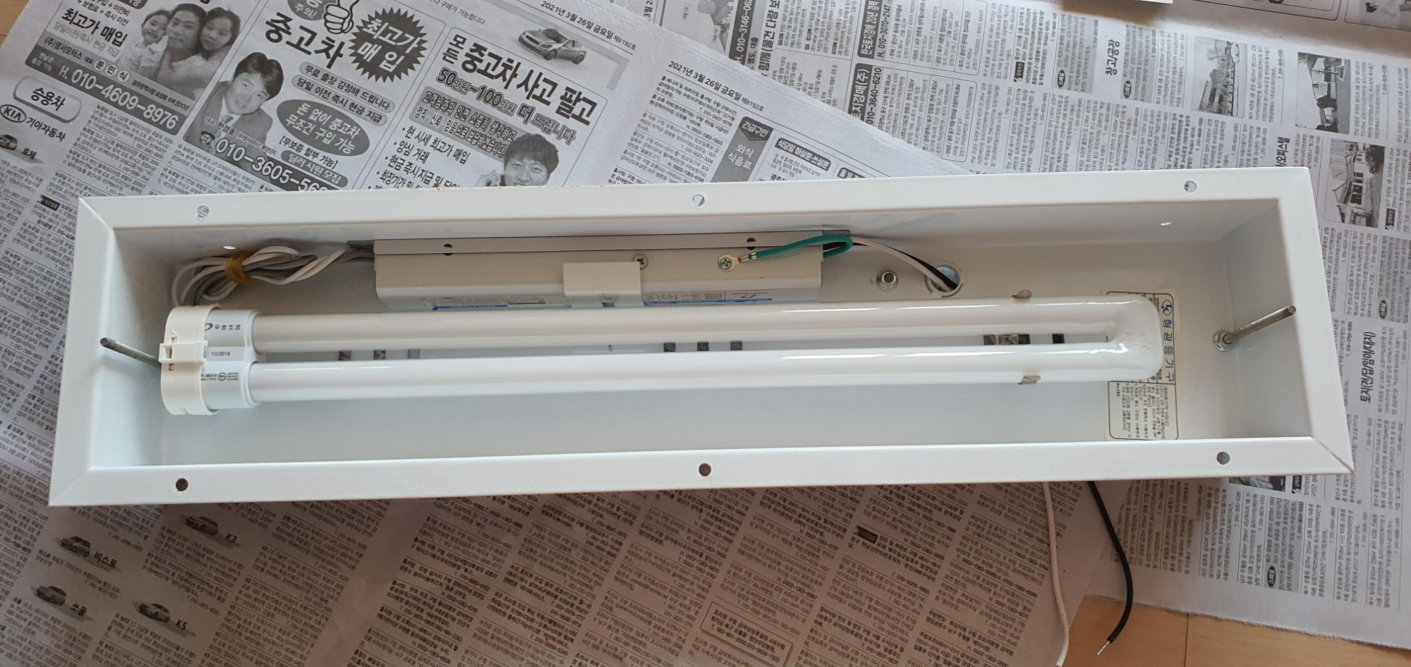 새로운 형광등 안정기에 새로운 형광등을 끼워주니 새 제품 쓰는 거 같은 기분이 듭니다.