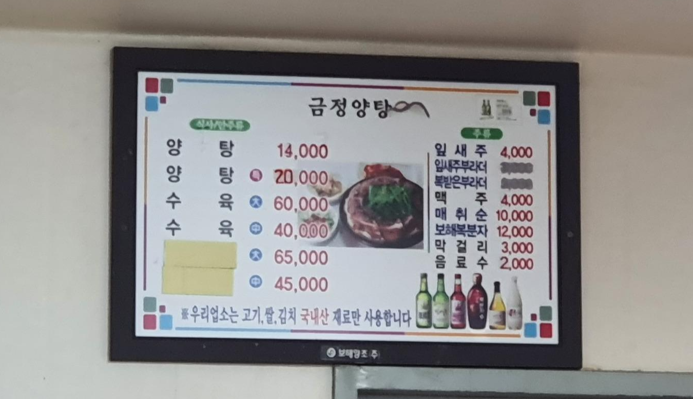 메뉴는 양탕과 수육이 전부입니다.