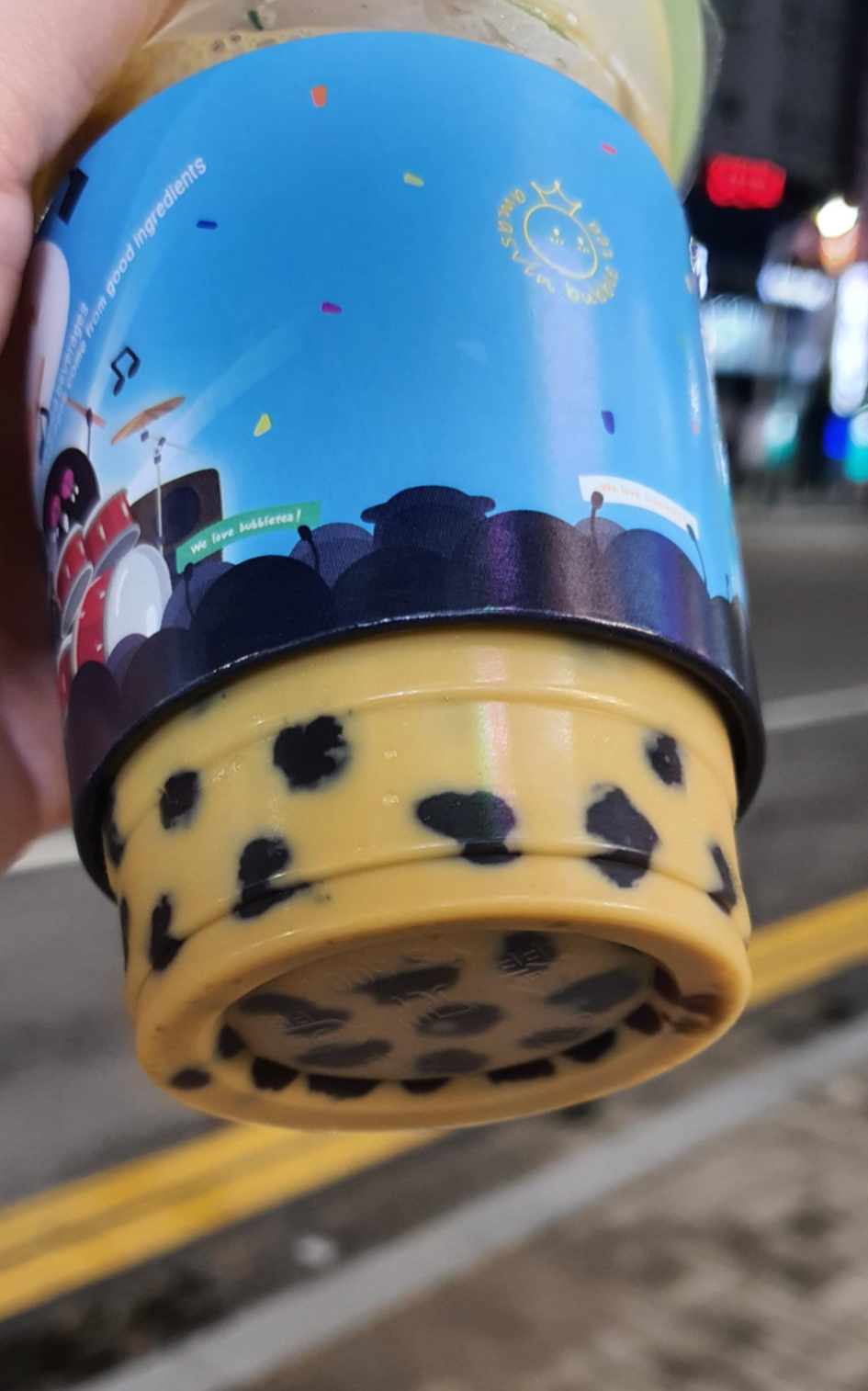 컵 케이스를 벗기고 보니까 그래도 전체 음료 용량의 2/5 정도 넘는 양이 타피오카 펄로 가득 차 있는 듯합니다.
