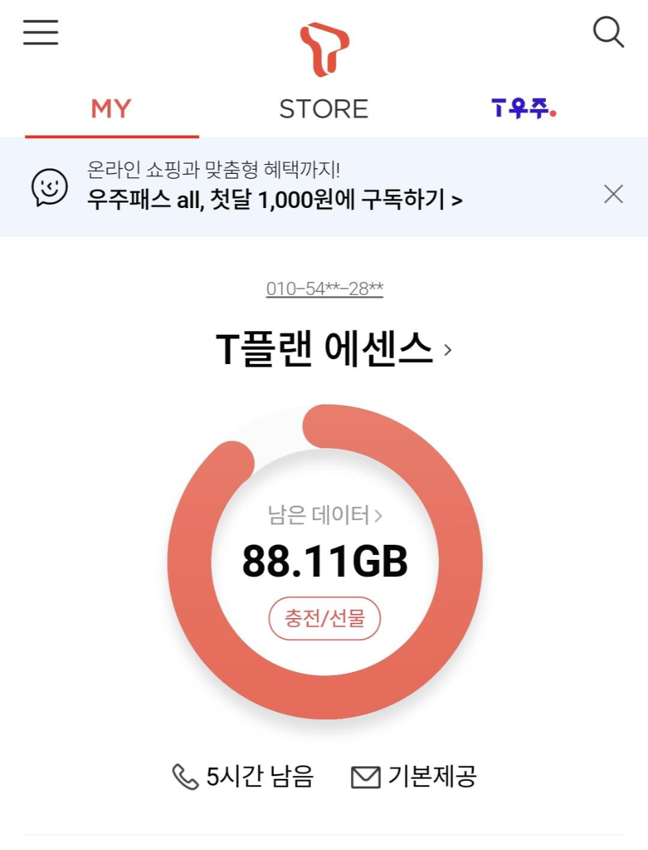※ 저는 LTE 100GB 요금제라서 5G 요금제랑은 다를 수도 있습니다.