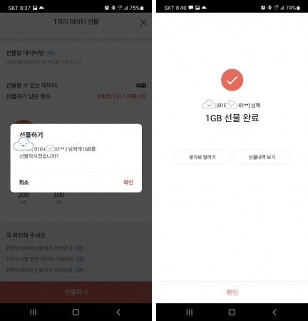 SKT 사용자끼리 데이터 선물하기 - T끼리 데이터 선물