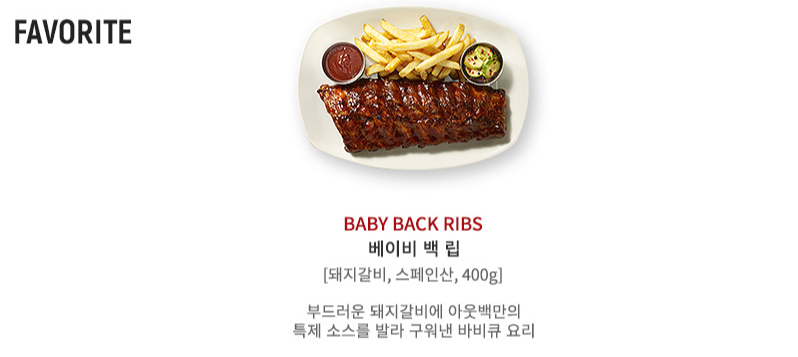 마지막으로 조리되어 나온 음식인 베이비 백 립입니다.