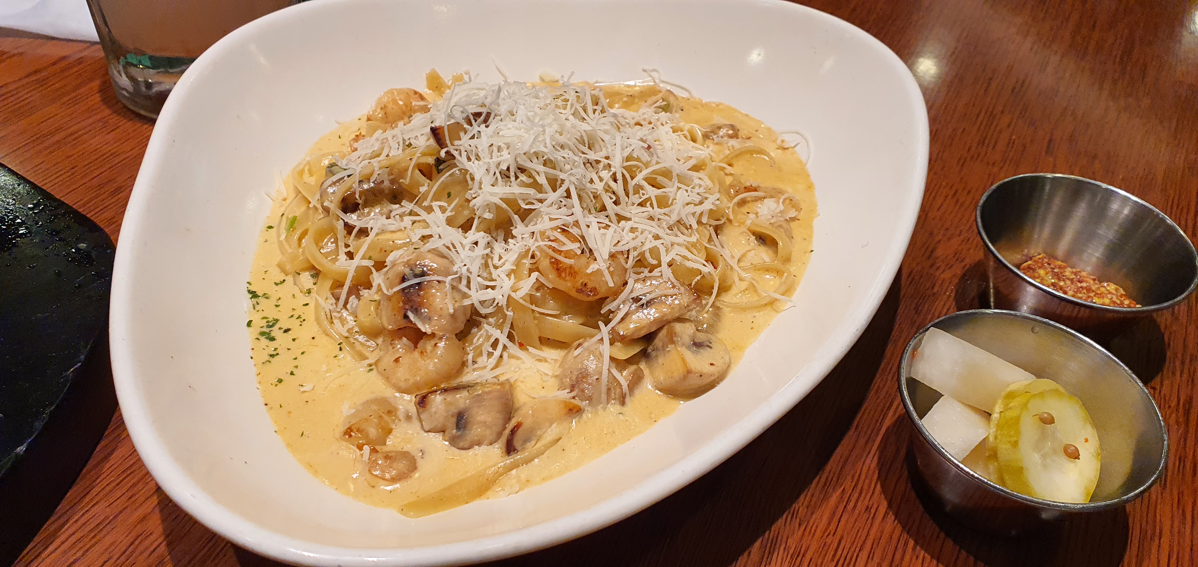 투움바 특유의 그 진한 맛과 더불어서 생면 파스타의 식감이 너무 좋았으며 양송이버섯이랑 새우가 정말 파도 파도 계속 나올 정도로 양도 많고 좋았습니다.
