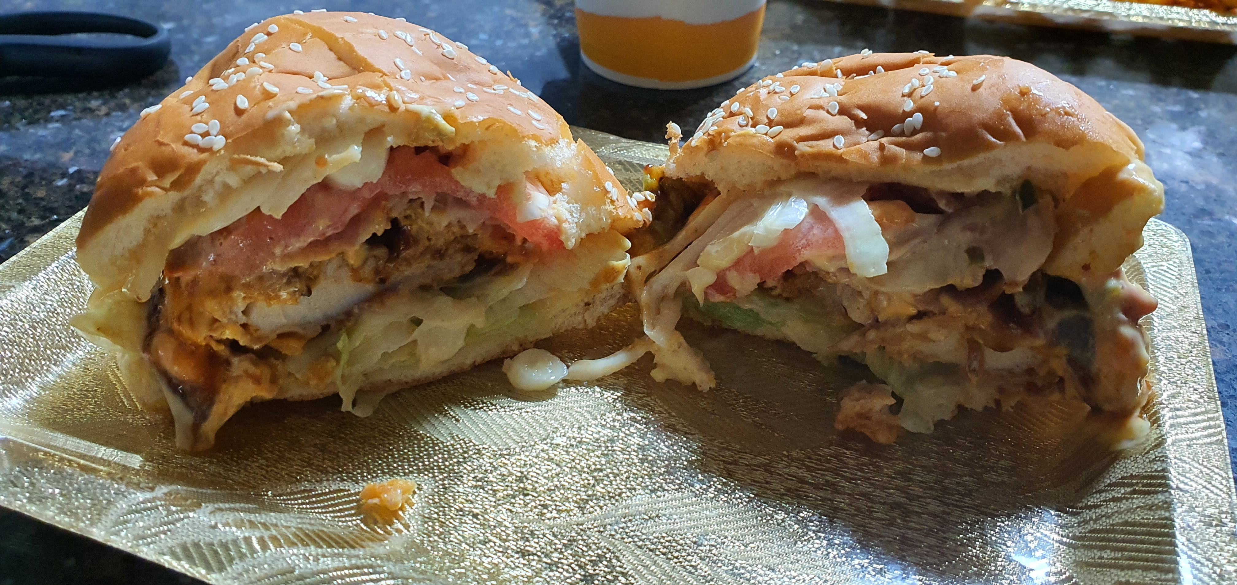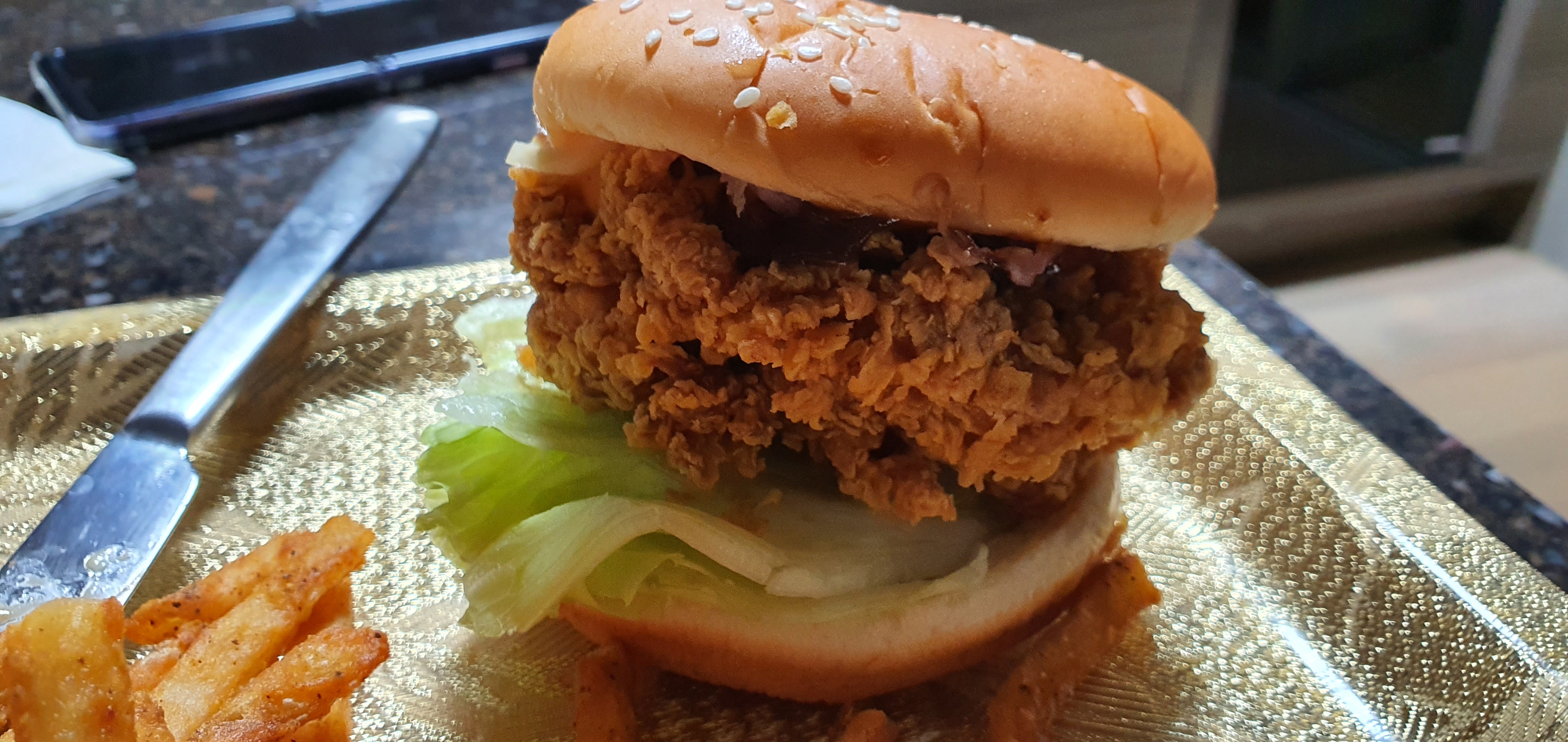 누가 보면 KFC 치킨을 패티 대신에 넣었다고 해도 믿을 만한 사이즈입니다.