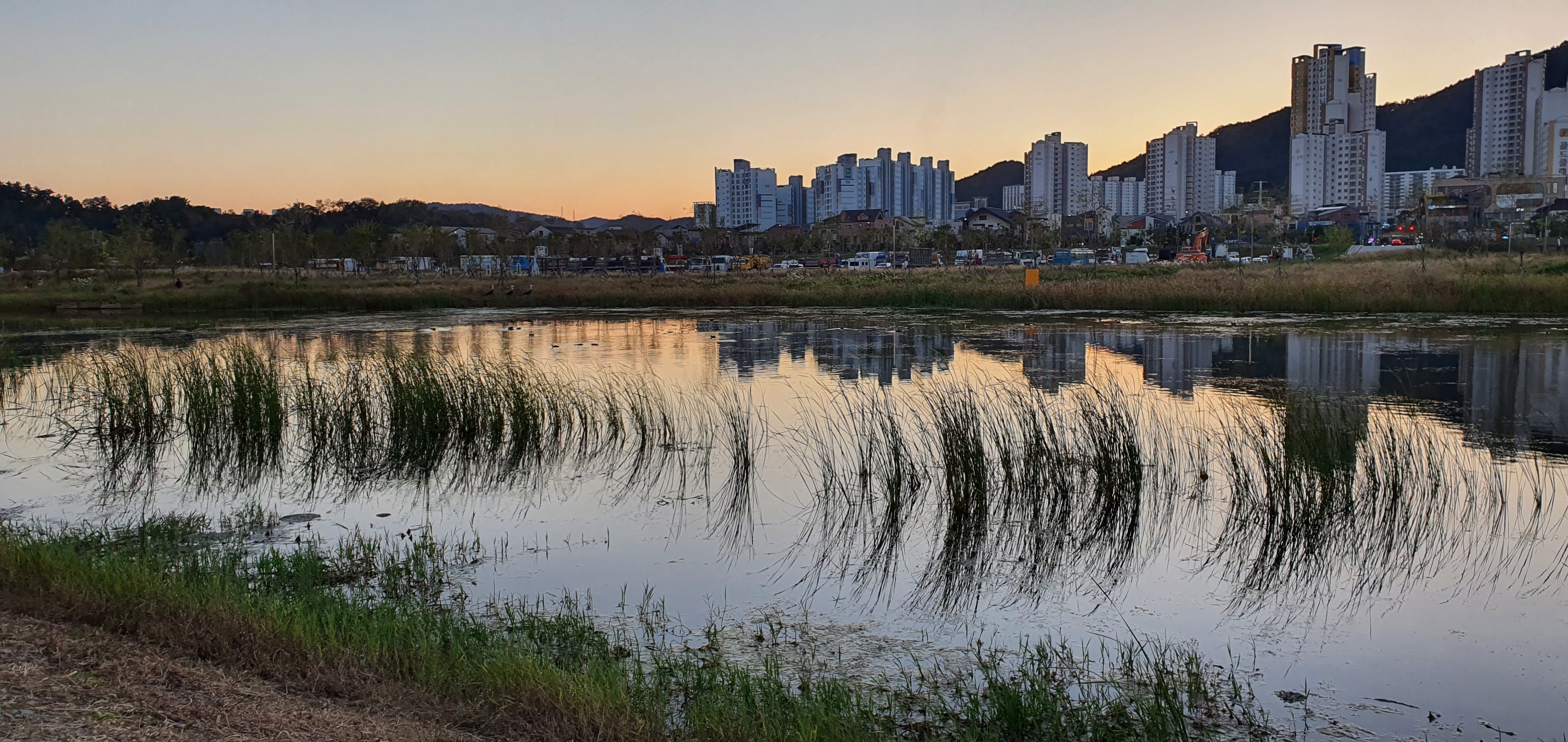 저류지 주차장에 차를 대고 나시면 바로 옆에 있는 순천 오천 저류지 공원을 걸어서 지나가야 합니다.