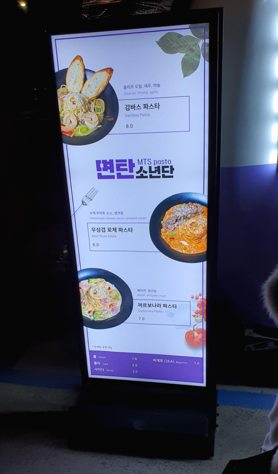 마지막으로 들렀던 가게는 "면탄소년단" 에서의 까르보나라 파스타(7천 원)였습니다.