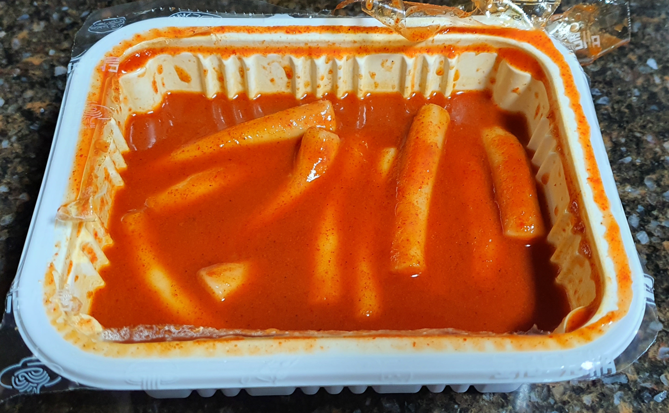 대표 시그니처 메뉴답게 포장을 뜯지도 않았는데 벌써부터 매운 향이 살살 올라오는 게 역시 신전떡볶이 답습니다.