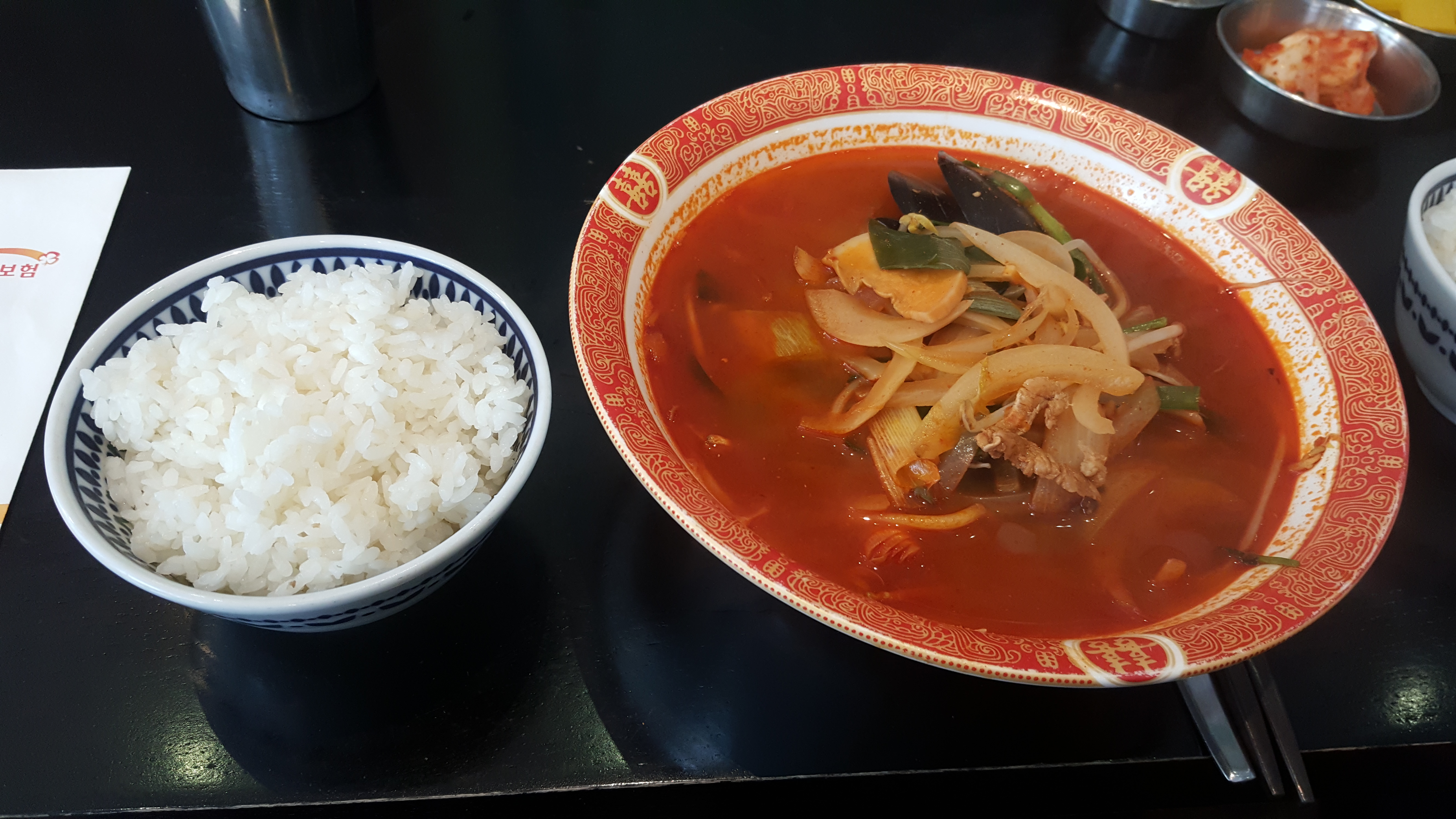 양파, 오징어, 고기 그리고 조그만 새우들도 아주 많이 건져먹어야 할 정도로 양이 많았으며 국물이 완전히 매운 게 아닌 자극적이지 않은 편안하면서 은은한 매운맛이었다.